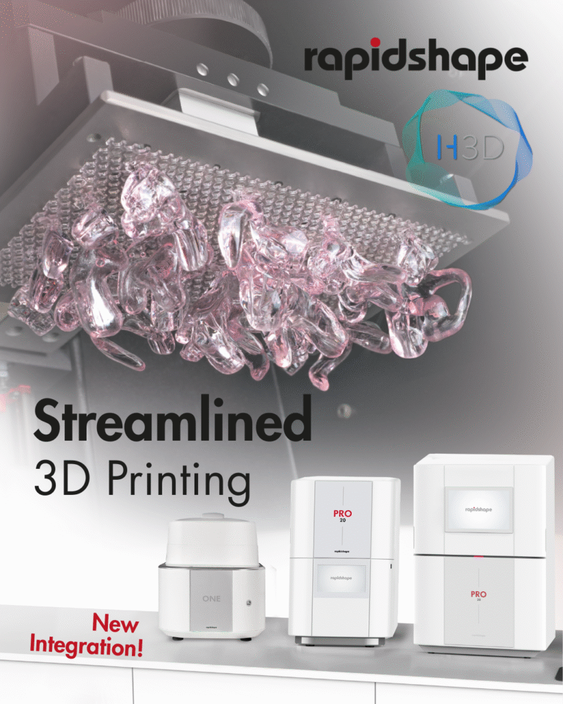 “Integrating our AI CAD technology with Rapid Shape’s new RS Studio software was the obvious next step to benefit manufacturers, labs and clinics”, said Iain McLeod, CEO of H3D, “Our common goal of a fully automated design to print workflow is now here, allowing labs and clinics to operate more efficiently than ever before.”